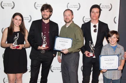 (From left to right) Micaela Femiano-Best Documentary short - “Un Luz: Exploring Article 13”, Matt Beurois-Best International Film - “L'Homme du Passé”, Jeff Lewis - Honorable Mention - “Lie With Me”, Nicolas Wendl - “Honorable Mention & Best Original Score - “From The Woods”, Cameron McIntyre - Actor - “From The Woods”